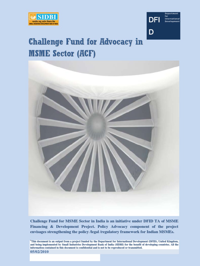 Challenge Fund for MSME Sector in India is an initiative under DFID TA of MSME Financing & Development Project. Policy Advocacy component of the project envisages strengthening the policy /legal /regulatory framework for Indian MSMEs.