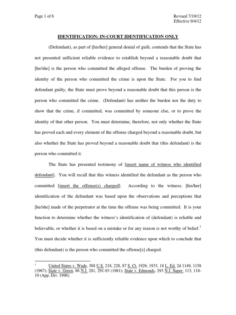 This 3-page document provides guidance for a jury on evaluating eyewitness identification evidence in a criminal trial. It instructs the jury to consider various factors that could impact th…