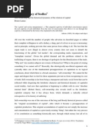 rather the same labour is specified in differing and even contradictory manner -- in accordance with whether it is related to the use-value of the commodity as labours product or related to the commodity-value as its merely objective expression. (21) To the question of how labor produces and reproduces the capital relation, the value form, in which it is enmeshed, there is another burning question for Marxist theory, the question linked to class consciousness: how can the historically specific productive power of labor in capitalism concretely shatter the reified modes within which capital has imprisoned it. This is not a metaphysical question about a purported human essence, or a question of a philosophical anthropology; nor is it an ontological question, unless one re-functions ontology in the mode of a historical ontology. For Reichelt: The human essence, the unity of the individual with its species being, exists only in inverted form, which has to be eliminated through revolutionary praxis. (22) The human essence and species being to which Reichelt here points is not an ahistorical given or fixed human nature, but rather a project to be actualized by the praxis of the collective worker; it is prospective. And that praxis, instantiated in social labor, is no more transhistorical in nature than is the labor that produces value. Given the historicity of capitalism and the value form, then, what powers slumber within the social labor that produces both the abstract value and the use value contained within the commodity form that have the potential to explode it? We have to look at those elements of human praxis, the praxis of the collective worker, that capitalism requires both for its valorization and for the production of real wealth, elements that are indispensable to the accumulation process, but which also contain the prospect of destroying it. In 1970, Hans-Jrgen Krahl raised a question which Marxism, and value form theory in particular, still needs to theoretically answer: Can the dialectic of work, namely social labor not only be a misfortune of its utilization by capital, but also a capital negating [ kapitalnegatorische] productive force for emancipation .? (23) For Bonefeld, the fundamental contra-diction of capital is its dependence on labour. (24) But while capital is dependent on labor, for Bonefeld the relation of social labor to capital is far more complicated: Capital can not autonomise itself from living labour; the only autonomisation possible is on labours side. . Labour exists in and against capital, while capital, however, exists only in and through labour. . The social practice of labour exists against capital and also as a moment of the latters existence. (25) Bonefelds claim that the social practice of labor exists against capital is a seminal insight, but only a first step in responding to Krahls challenge, which then requires a level of concretization that is far more detailed, and to which my own text can do little more than point. In Capital, Marx has provided us with key elements for such as response: Labour is, first of all, a process between man and nature, a process by which man, through his own actions, mediates, regulates and controls the metabolism between himself and nature. He confronts the materials of nature as a force of nature. He sets in motion the natural forces which belong to his own body, his arms, legs, head and hands, in order to appropriate the materials of nature in a form adapted to his own needs. Through this movement he acts upon external nature and changes it, and in this way he simultaneously changes his own nature. (26)