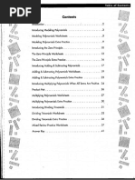 Each term has a degree that depends on the number of literal factors it has. Term 5x; thas degree 3; term -3y has degree 4; term 82xy has degree 7. Use these examples to help you complete the following chart. Term Numerical Literal Degree of the Coefficient Coefficient term 4a5 -5c4d3 24x8y 8a2b4 -6c5de3 4. Addition questions are often written horizontally, in the symbolic form, rather than vertically. e.g. (5x+3x-7)+(3x-4x+2) means that we are to add the two bracketed polynomials. We will add 3x to 5x, -4x to 3x, and 2 to -7. We could communicate this question with fewer symbols if we wrote 5x+3X-7+3x-4x+2. In a question written in string form like this, it is easiest to think of collecting like terms if we visually isolate two like terms, remembering to take any sign in front of the term as a positive or negative sign, and tell ourselves to add. When we simplify 5x+3x-7+3x-4x+2, we get 8x-x-5. Model this question with your tiles to verify the result. Simplify the following questions. a. 2x2 + 7x + 8x2 x - 6 c. 10ab - 5c + 2ab + 7c e. 7pqr + 2r - 3pqr - r b. 3x2 - 6x2 - 4x2 + 7x2 d. 9y4 + 7y3 y + 8y - 5y3 + y4 f. 8a+4a-a-9a 4 a 5