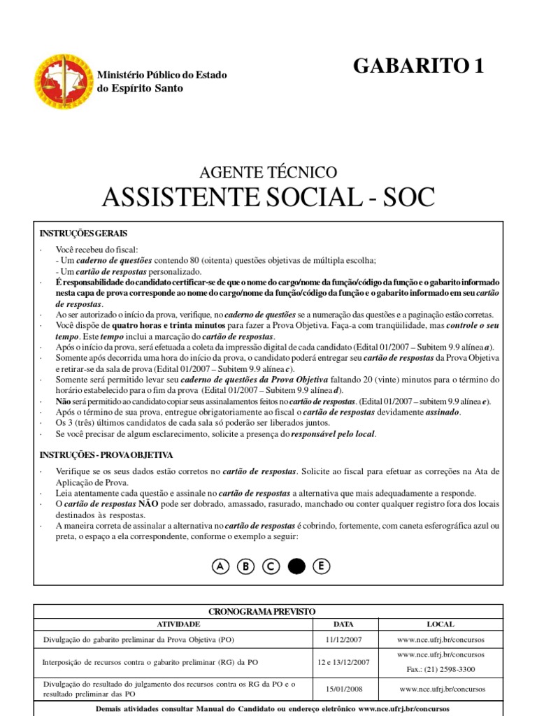ATIVIDADE Divulgao do gabarito preliminar da Prova Objetiva (PO) Interposio de recursos contra o gabarito preliminar (RG) da PO Divulgao do resultado do julgamento dos recursos contra os RG da PO e o resultado preliminar das PO DATA 11/12/2007 12 e 13/12/2007 15/01/2008 LOCAL www.nce.ufrj.br/concursos www.nce.ufrj.br/concursos Fax.: (21) 2598-3300 www.nce.ufrj.br/concursos