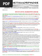 CHRISTIAN CRITICISM OF AMWAY AS MLM [8-14] (MULTI- LEVEL MARKETING HARASSMENT BY [Link] [7]) EMAIL ENQUIRIES IN RESPECT OF BIO DISC [16- 18] MULTI- LEVEL MARKETING [18-140] FROM WIKIPEDIA, THE FREE ENCYCLOPEDIA [18-21] MULTI- LEVEL MARKETING IN INDIA. SOME NEWS STORIES [21- 31] SELECTED SECULAR CRITICISM OF MULTI- LEVEL MARKETING [32-106] WHAT IS WRONG IN MLM? BY DEAN VAN DRUFF [32-36] SEE ALSO [116- 121] ALL YOU NEED TO KNOW ABOUT MLM FROM [Link] [36-74] THE MIRAGE OF MULTILEVEL MARKETING BY STEPHEN BARRETT OF [Link] [74, 75] MULTI- LEVEL MARKETING BY [Link] [76] LOTIONS AND POTIONS: THE BOTTOM LINE ABOUT MULTI- LEVEL MARKETING PLANS [76, 77] NET BASED BUSINESS OPPORTUNITIES: ARE SOME FLOP- PORTUNITIES ? [77, 78] MULTI- LEVEL MARKETING BY [Link] [79-81] NCAHF POSITION PAPER ON MULTILEVEL MARKETING OF HEALTH PRODUCTS [81-83] THE ORIGIN OF MULTILEVEL MARKETING BY STEPHEN BARRETT, M.D. [83] MLM GLOSSARY BY MLM [Link] [83, 84] BOTH BUYERS AND SELLERS SHOULD BE WARY OF MULTILEVEL MARKETING BY DR. WILLIAM JARVIS [84, 85] TYPICAL MLM MISREPRESENTATIONS BY DR. JON M. TAYLOR [85- 87] WHAT ARE THE ODDS OF PROFITING IN MLM? BY DR. JON M. TAYLOR [87-88] FREQUENTLY ASKED QUESTIONS AND STRAIGHT ANSWERS ABOUT MLM BY DR. JON M. TAYLOR [88-93] SOME SHOCKING STATISTICS. COMPARING RECRUITING MLM s WITH NO- PRODUCT PYRAMID SCHEMES , AND WITH GAMBLING [93, 94] LINKS TO INFORMATION ON MLM s IN GENERAL [94- 98] TRUTH ON MLM OR NETWORK MARKETING BY MLM- THE [Link] [94, 95] MLM WATCH BY [Link] [95- 97] MLM BY [Link] [97] MISCELLANEOUS [98] PYRAMID SCHEMES [98- 99] HOW TO IDENTIFY A PRODUCT-BASED PYRAMID SCHEME ("RECRUITING MLM") [98- 99] LINKS TO PYRAMID SCHEMES BY [Link] [99] MLM SURVIVORS PAGES/ TESTIMONIES [100- 101] FTC CRACKS DOWN ON CON ARTISTS WHO TARGET JOBLESS AMERICANS [102- 104] FOUR LIES ABOUT MLM [104- 106] SELECTED EVANGELICAL CHRISTIAN RESPONSES TO MLM [106- 136] TEN BIG LIES OF MULTILEVEL MARKETING BY ROBERT L. FITZPATRICK [106- 108] IS MULTI LEVEL MARKETING CHRISTIAN? BY PHIL SCOVELL [108- 112] CHRISTIANS AND MULTI LEVEL- MARKETING [112- 113] IS THERE SUCH A THING AS CHRISTIAN MULTI LEVEL MARKETING ? BY GREGG COPELAND [114] UNDERSTANDING THE DIFFERENCE BETWEEN MULTI- LEVEL MARKETING PROGRAMS AND PYRAMID SCHEMES BY RYAN [115, 116] WHATS WRONG WITH MULTI- LEVEL MARKETING ? BY DEAN VAN DRUFF [116- 121] WHAT IS WRONG WITH MLM FREQUENTLY ASKED QUESTIONS [121-129] MULTI- LEVEL MARKETING AND THE CHURCH BY DARREN HUNTER [130- 136] CATHOLIC CRITICISM OF THE MORALITY OF MULTI- LEVEL MARKETING [136- 138] ADDITIONAL INFORMATION [138-140] MY COMMENTS [141, 142] INDEX [143]