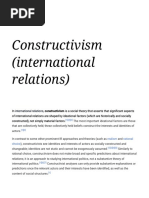 International society theory (the English school) International society theory, also called the English School, focuses on the shared norms and values of states and how they regulate international relations. Examples of such norms include diplomacy, order, and international law. Unlike neo-realism, it is not necessarily positivist. Theorists have focused particularly on humanitarian intervention, and are subdivided between solidarists, who tend to advocate it more, and pluralists, who place greater value in order and sovereignty. Nicholas Wheeler is a prominent solidarist, while Hedley Bull and Robert H. Jackson are perhaps the best known pluralists. Social Constructivism Social Constructivism encompasses a broad range of theories that aim to address questions of ontology, such as the Structure and agency debate, as well as questions of epistemology, such as the "material/ideational" debate that concerns the relative role of material forces versus ideas. Constructivism is not a theory of IR in the manner of neorealism, but is instead a social theory which is used to better explain the actions taken by states and other major actors as well as the identities that guide these states and actors. Constructivism in IR can be divided into what Hopf (1998) calls 'conventional' and 'critical' constructivism. Common to all varieties of constructivism is an interest in the role that ideational forces play. The most famous constructivist scholar, Alexander Wendt noted in a 1992 article in International Organization (later followed up by a book, Social Theory of International Politics (1999)), that "anarchy is what states make of it". By this he means that the anarchical structure that neo-realists claim governs state interaction is in fact a phenomenon that is socially constructed and reproduced by states. For example, if the system is dominated by states that see anarchy as a life or death situation (what Wendt terms a "Hobbesian" anarchy) then the system will be characterised by warfare. If on the other hand anarchy is seen as restricted (a "Lockean" anarchy) then a more peaceful system will exist. Anarchy in this view is constituted by state interaction, rather than accepted as a natural and immutable feature of international life as viewed by neo-realist IR scholars. Critical Theory