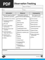 Consequence ___Ignored ___Used proximity ___Nonverbal cue ___Verbal warning ___Changed assignment ___Redirected ___Loss of privileges ___Gave time out ___Referral