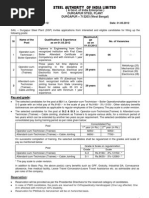 STEEL AUTHORITY OF INDIA LIMITED (A Govt. of India Enterprise) RAW MATERIALS DIVISION Advt. No.RMD/K/PERS/F-14/2012/1168 dated: 06.07.