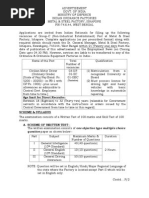 How to Apply: Candidates fulfilling the above criteria may send their typewritten application in the format, prescribed below, with two signed recent passport size photographs, apart from the photo pasted (signature should be done as not to distort the face): 1. Post Applied for and Advt. No. 2. Name of the Applicant (in Block letters): 3. a) Name of Employment Exchange (if Registered): b) Registration No. (If any):