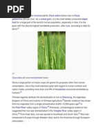 Rice is the seed of the monocot plants Oryza sativa (Asian rice) or Oryza glaberrima (African rice). As a cereal grain, it is the most important staple food for a large part of the world's human population, especially in Asia and the West Indies. It is the grain with the second-highest worldwide production, after maize (corn), according to data for 2010.[1] Since a large portion of maize crops are grown for purposes other than human consumption, rice is the most important grain with regard to human nutrition and caloric intake, providing more than one fifth of the calories consumed worldwide by the human species.[2] There are many varieties of rice and culinary preferences tend to vary regionally. For example in India, there is a saying that "grains of rice should be like two brothers, close but not stuck together" , while in the Far East there is a preference for softer, stickier varieties. Because of Oryza sativa, commonly known as Asian rice its importance as a staple food, rice has considerable cultural importance. For example, rice is first mentioned in the Yajur Veda and then is frequently referred to in Sanskrit texts. Rice is often directly associated with prosperity and fertility, therefore there is the custom of throwing rice at weddings.[3] Rice is normally grown as an annual plant, although in tropical areas it can survive as a perennial and can produce a ratoon crop for up to 30 years.[4] The rice plant can grow to 11.8 m (unknown operator: u'strong'unknown operator: u'strong'unknown operator: u'strong' unknown operator: u'strong') tall, occasionally more depending on the variety and soil fertility. It has long, slender leaves 50100 cm (unknown operator: u'strong'unknown operator: u'strong'unknown operator: u'strong' unknown operator: u'strong') long and 22.5 cm (unknown operator: u'strong'unknown operator: u'strong'unknown operator: u'strong' unknown operator: u'strong') broad. The small wind-pollinated flowers are produced in a branched arching to pendulous inflorescence 3050 cm (unknown operator: u'strong'unknown operator: u'strong'unknown operator: u'strong' unknown operator: u'strong') long. The edible seed is a grain (caryopsis) 512 mm (unknown operator: u'strong'unknown operator: u'strong'unknown operator: u'strong' unknown operator: u'strong') long and 23 mm (unknown operator: u'strong'unknown operator: u'strong'unknown operator: u'strong' unknown operator: u'strong') thick. Rice cultivation is well-suited to countries and regions with low labor costs and high rainfall, as it is labor-intensive to cultivate and requires ample water. Rice can be grown practically anywhere, even on a steep hill or mountain. Although its parent species are native to Asia and certain parts of Africa, centuries of trade and exportation have made it commonplace in many cultures worldwide. The traditional method for cultivating rice is flooding the fields while, or after, setting the young seedlings. This simple method requires sound planning and servicing of the water damming and channeling, but reduces the growth of less robust weed and pest plants that have no submerged growth state, and deters vermin. While flooding is not mandatory for the cultivation of rice, all other methods of irrigation require higher effort in weed and pest control during growth periods and a different approach for fertilizing the soil. (The name wild rice is usually used for species of the grass genus Zizania, both wild and domesticated, although the term may also be used for primitive or uncultivated varieties of Oryza.)