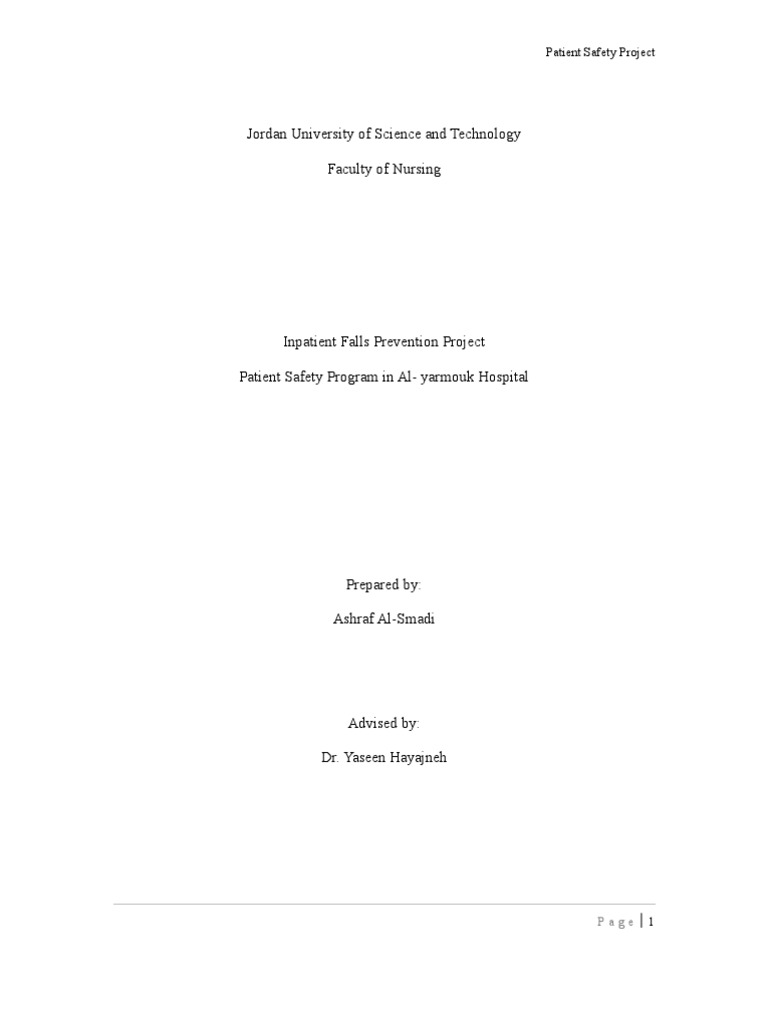 patient’s safety to improve health care quality regarding patient’s falls [1].