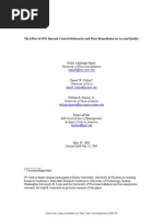Bibliography Ashbaugh-Shaife, H., Collins, D.W., Kinney Jr.,W. R., and Lafond, R. (2009). The Effect of SOX Internal Control Deficiencies on Firm Risk and Cost of Equity. Journal of Accounting Research,47(1). Benoit, B., and Mooradian, M. (2009). The Tipping Point: Collision of Relaxed Regulation, Small Business and the Economy. Lord & Benoit. Benoit, B. (2006). Do the Benefits of 404 Exceed the Cost? Lord & Benoit, 1-6. Bisoux, T. (2005). The Sarbanes-Oxley. Biz Ed Journal, July/August, 24-29. Goltlieb, O. (2006). Paying the Price for Internal Control Deficiencies. Audit Integrity News, 15. Iliev, P. (2010). The Effect of Sox Section 404: Costs, Earnings, Quality, and Stock Prices. The Journal of Finance, LXV (3). Leuz, C., Triantis, A. and Wang, T. (2008). Why do firms go dark? Causes and economic consequences of voluntary SEC deregistrations. Journal Of Accounting And Economics, 45(Economic Consequences of Alternative Accounting Standards and Regulation), 181208. doi:10.1016/j.jacceco.2008.01.001 Office of Economic Analysis, U.S. Securities and Exchange Commission (2009). Study of Sarbanes-Oxley Act of 2002 Section 404 Internal Control over Financial Reporting Requirements, 1-67.