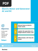 Z = total number of conductors = flux per pole in lines This equation represents the average voltage. For a given machine, it can be reduced to: E = K1 where: = flux per pole S = speed in rpm K1 = all other factors Motor As stated previously, if current is supplied to a conductor in a magnetic field, a force will be produced. The force developed in a single conductor is: F = (B I) / 10 where: F = force in dynes B = flux density in lines per square centimeter = length of the conductor in centimeters I = current in amperes This equation can be developed to the following for DC motors: T = 11.73 x (Z / paths) x where: T = torque in ft-lb x poles x IA x 10-10 S