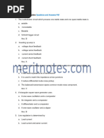 8. Equal area criterion gives the information regarding ----------- Absolute Stability 9. Which type o f supply and what is the voltage rating for railway bogies ---Dc & 110V 10. The basic principle of KVL ----------- Law of Energy 11. At very high frequencies, series R-C circuit behaves as almost purely------circuit 1. Capacitive 2. Resistive 3. Inductive 4. None of the above