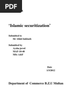 Securitization Islamic institutions are growing in the global market. They also participate in global securitization in Islamic perspective. Securitization is recent invention in conventional banks. Islamic banks also involved in this dynamic line of business. Basically securitization means issuing of certificate of ownership against an investment pool or business enterprises. In defining securitization we focus on processes 1. The process of pooling interest 2. The process of packaging them into securities 3. The process of distributing securities to investor An Islamic institution focus on package not process of package. They focused that package should be interest free. Securitization is the invention of Americans but no longer remain to be used only by Americans. It grew into significant business in 1990s. Today securitization is not only for mortgaging on properties but also credit card receivables, computer lease, equipment leases, auto loan sand notes financing etc. The growth of securitization is basically driven by four factors. Imposition of capital adequacy ratios and Reserve requirement on financial institutions by regulatory agencies guide safer place to invest When global cost increases secr helps securitization helps financial institutions to raise cheaper capital for their businesses at the asset level instead of the enterprise level. there is a growing convergence of many capital markets into one, as the barriers between them were removed. As all segments of the economy now compete for the same capital, efficient, low cost of financing have become more necessary. Fourth, increased ability to generate and utilise information through popular use of rapidly improving computer technology has resulted in significant gains for the securitization business.