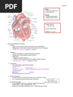 Endocarditis: - Definition: o Inflammation of the inner layer of the heart which are the valves (mitral more common) - Pathophysiology: o Usually is bacterial o Strep and Staph that becomes systemic o Will cause incompetence of mitral valve, mitral regurgitation, decreased cardiac output - Clinical manifestations: o Slight fever, headache, malaise, fatigue during the first stage o Marked fever and chills, anorexia, develop dark purple lines on fingernails (splinter hemorrhages diagnostic for this disease) as the disease progress o Heart failure symptoms will develop o Murmur in the mitral valve will be noted - Assessment and diagnostic findings: o Blood culture o ECHO will show vegetations - Complications: o Heart failure o Vegetations may brake off and becomes an emboli that will lead to cerebral embolism (mitral) or pulmonary embolism (tricuspid) - Medical management: o Long term antibiotic therapy o Surgery (replacement of mitral valve) if delayed medical attention - Nursing management: o Teaching about medications o Enforced activity restrictions o Need for antibiotics throughout lifespan