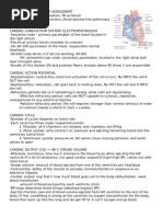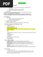 o Pulsus Paradoxus systolic blood pressure is greater than 10 mmHg that is detected during exhalation but nut heard with inhalation (let the patient hold their breath for at least 10 seconds) o Distant heart sounds (muffled) - Assessment and diagnostic findings: o Chest percussion o Flatness across the anterior of the chest is noted o ECHO o Clinical symptoms with chest X-ray definitive diagnosis o Cardiac enzyme to rule out MI - Medical management: o Pericardiocentesis is done o Pericardiotomy Pericarditis: - Definition: o Inflammation of the pericardium - Pathophysiology: o Idiopathic o Infection (viral, rarely bacterial, and fungal) o Disorders of connective tissue (rheumatic fever, rheumatoid arthritis) o Immune reactions o MI o Neoplastic disease o Radiation therapy o Trauma o Renal failure, uremia, and tuberculosis - Clinical manifestations: o Chest pain (beneath the clavicle, neck, left scapula region) which can worsten during deep inspiration and when lying down or turning o It may relieved with a forward-leaning or sitting position o Friction rub is the most characteristic sign of pericarditis fourth intercostal space and left sternal border would friction rub be heard more o Mild fever, increased WBC, increased ESR, dyspnea, signs and symptoms of heart failure are also some clinical manifestations o Let them hold their breath for 5 seconds to differentiate pericarditis from pneumothorax o Distant and muffled heart sounds o Tachycardia, severe hypotension - Assessment and diagnostic findings: o Patients history o Signs and symptoms o ECHO for diagnosis o 12-lead ECG ST segment elevation in the absence of any of the cardiac enzyme markers, depressed R wave