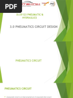 Here is a six step sequence involving three cylinders. The sequence is as follows: 1. Operator actuates start push button. Clamp cylinder extends. 2. Clamp cylinder actuates limit valve 1. Punch cylinder extends. 3. Punch cylinder releases limit valve 3 and actuates limit valve 2. Punch valve retracts. 4. Punch cylinder releases limit valve 2 and actuates limit valve 3. Clamp cylinder retracts. Time delay 1 starts. 5. Time delay 1 times out. Eject cylinder extends, time delay 2 starts. 6. Time delay 2 times out. Eject cylinder is retracted and circuit is reset.