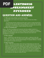 Definition of a formula: Anything in a cell when the first character is an equal sign. (Anything in a cell or formula textbox when the first character is an equal sign and the cell is not preformatted as Text). Advantages of a formula: You are telling Excel to do calculations, look into another cell, create text strings, or deliver a range How to create a formula: Type =, followed by: 1. Cell references (also: names and sheet references) 2. Operation signs 3. Functions 4. Text that is in quotes (ex: For The Month Ended) 5. Ampersand symbol: & i. To combine information from different cells, text in quotes, or functions use the ampersand: & 1. Example: ="For The Month Ended "&B5 ii. To Extend the upper limit for Functions 1. Example: Extend IF upper limit of seven to more than seven 6. Numbers i. The only numbers that ever go in a formula are numbers that will never change (such as the number of months in a year) How to enter a formula into a cell: hit one of the following: 7. ENTER 8. Ctrl + Enter 9. Tab
