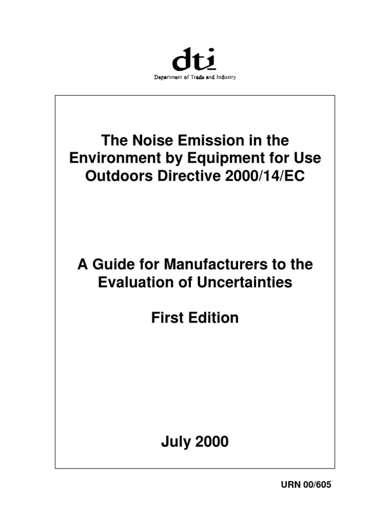 This guide is intended to offer assistance to manufacturers of outdoor equipment to understand the provisions for measurement uncertainty in the Directive. It is not an authoritative interpretation of the Directive, which is a matter for the Courts. The guide seeks to explain the provisions of the Directive for measurement uncertainty only and does not attempt to address all requirements of the Directive. You should refer to the Directive itself (2000/14/EC) for a full statement of the requirements.
