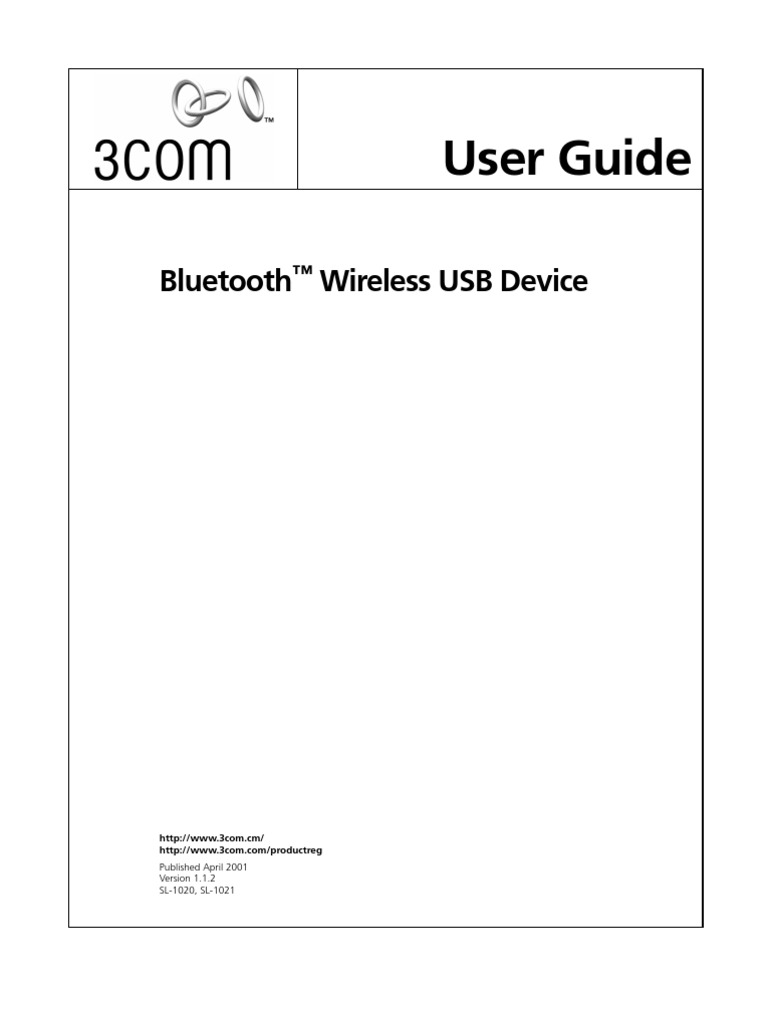 Copyright 2001 3Com Corporation. All rights reserved. No part of this documentation may be reproduced in any form or by any means or used to make any derivative work (such as translation, transformation, or adaptation) without written permission from 3Com Corporation. 3Com Corporation reserves the right to revise this documentation and to make changes in content from time to time without obligation on the part of 3Com Corporation to provide notification of such revision or change. 3Com Corporation provides this documentation without warranty, term, or condition of any kind, either implied or expressed, including, but not limited to, the implied warranties, terms or conditions of merchantability, satisfactory quality, and fitness for a particular purpose. 3Com may make improvements or changes in the product(s) and/or the program(s) described in this documentation at any time. If there is any software on removable media described in this documentation, it is furnished under a license agreement included with the product as a separate document, in the hard copy documentation, or on the removable media in a directory file named LICENSE.TXT or !LICENSE.TXT. If you are unable to locate a copy, please contact 3Com and a copy will be provided to you. UNITED STATES GOVERNMENT LEGEND If you are a United States government agency, then this documentation and the software described herein are provided to you subject to the following: All technical data and computer software are commercial in nature and developed solely at private expense. Software is delivered as Commercial Computer Software as defined in DFARS 252.227-7014 (June 1995) or as a commercial item as defined in FAR 2.101(a) and as such is provided with only such rights as are provided in 3Coms standard commercial license for the Software. Technical data is provided with limited rights only as provided in DFAR 252.227-7015 (Nov 1995) or FAR 52.227-14 (June 1987), whichever is applicable. You agree not to remove or deface any portion of any legend provided on any licensed program or documentation contained in, or delivered to you in conjunction with, this User Guide. Unless otherwise indicated, 3Com registered trademarks are registered in the United States and may or may not be registered in other countries. 3Com is a registered trademark and the 3Com logo is a trademark of 3Com Corporation. The Bluetooth trademarks are owned by their proprietor and used by 3Com Corporation under license. Microsoft and Windows are registered trademarks of Microsoft Corporation. XTNDConnect PC is a registered trademark of Extended Systems. All other company and product names may be trademarks of the respective companies with which they are associated.