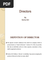 director - any member of the board of directors inside director - a director who, in addition to serving on the board, has a meaningful connection to the organization outside director - a director who, other than serving on the board, has no meaningful connections to the organization executive director - an inside director who is also an executive with the organization. The term is also used, in a completely different sense, to refer to a CEO non-executive director - a director who is not an executive with the organization