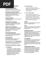 Layout measurements are used to locate; construction lines for buildings, bridges, waterways, pipelines, and other engineering works, and to establish the positions of boundary lines on the ground. Data gathering measurements are used to determine; horizontal positions of arbitrary points on the earths surface, elevations of arbitrary points above or below a reference surface, such as mean sea level (msl), the configuration of the ground, the direction of lines, the lengths of lines, the position of boundary lines, and the areas of tracts bounded by given lines. Branches of Surveying Plane Surveying: surveying where all distances and horizontal angles are assumed to be projected onto a horizontal plane. Geodetic Surveying: surveying where all distances and horizontal angles are projected onto the surface of the reference spheroid that represents mean sea level (msl) on the earth.
