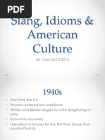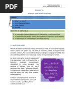 1. It is non-standard vocabulary characterized 1. Most idioms have only a nonliteral or metaphorical meaning; i.e., one cannot often by extreme informality; discover their meanings by looking up the individual words in an ordinary dictionary. 2. Its currency is not limited to a region; E.g., The thieves took everything, so I was left really up a gum tree (= in a difficult 3. It is composed of coinages or arbitrarily situation). However, some idioms have both a literal and a nonliteral meaning; e.g., He changed words, clipped forms, extravagant spilled the beans can mean (a) literally: He allowed the beans to get out of a container forced, or facetious (= amusing) figures of and fall on the floor or other surface; (b) nonliterally: He revealed a secret. speech, verbal novelties; 2. Most idioms are more or less invariable or 4. It is short-lived and therefore subject to fixed, both in wording and in certain grammatical ways. That is to say, they decline into use; function like lexical units or wholes. Because of this: 5. Generally, slang is only intelligible to those a. We cannot often make substitutions of synonymous words into idioms without loss of their idiomaticity or metaphorical meaning. E.g., in the idiom John gave up the ghost (= John died), we cannot replace ghost by apparition and say John gave up the apparition; it would no longer mean to die. b. We cannot often introduce modifiers (e.g., adjectives and adverbs) into idioms. E.g., in the idiom He let the cat out of the sack (= he revealed a secret), we cannot say He let the black cat out of the sack; it is no longer considered an idiom. c. They cannot often be used in the passive. E.g., Mrs. Jones gave up the ghost cannot be transformed into The ghost was given up by Mrs. Jones; it is no longer an idiom. d. Some idioms have slightly variant forms. E.g., We can say until kingdom come or till kingdom come (=for a very long time in vain) as in You can protest till kingdom come; however, no one will pay attention to you. Similarly, you can say up to the/ones ears/eyes/neck/eyeballs (= people associated with the group or groups who use it.