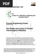 being performed, Bernoullis theorem expresses the law of energy conservation as follows: The total head (energy) at any particular point in the system above a common reference level is equal to the sum of the elevation head, pressure head and velocity head. Figure 2 details the steam reboiler configuration and the reference points for the energy balance. The pressure at Reference Point 1 is the steam pressure. Since there is essentially no flow in the balance line and the tie point is close to the reboiler inlet, a simplification that can be assumed is that the pressure at the condensate pot (Reference Point 2) is the same as the steam pressure (p2 = p1). Also, within the accuracy of a refinery engineering problem, the velocity at both reference points can be assumed to be the same. Therefore, Bernoullis equation can be simplified to: z1 = z2 + hL + pbundle