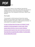 The lack of closeness in families can have a negative effect on children. Many parents have no idea how their children spend their time. Friends, television and the Internet have become the main influences on childrens behaviour. Teenagers are influenced by peer pressure. Juvenile delinquency is on the increase. Parents should be more involved with their childrens upbringing. Young people need positive role models.
