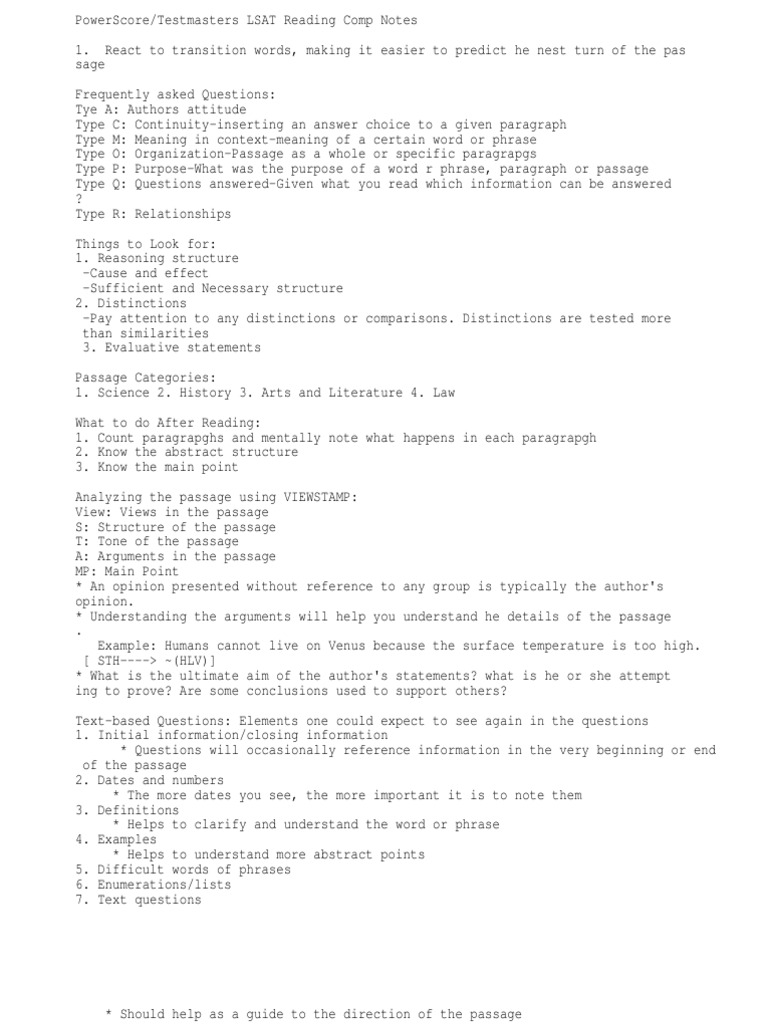 PowerScore/Testmasters LSAT Reading Comp Notes 1.