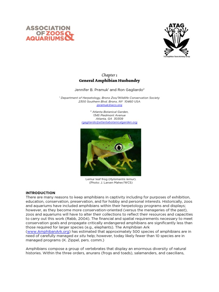 Amphibian Husbandry Resource Guide, Edition 1.1 A publication of AZAs Amphibian Taxon Advisory Group, 2008