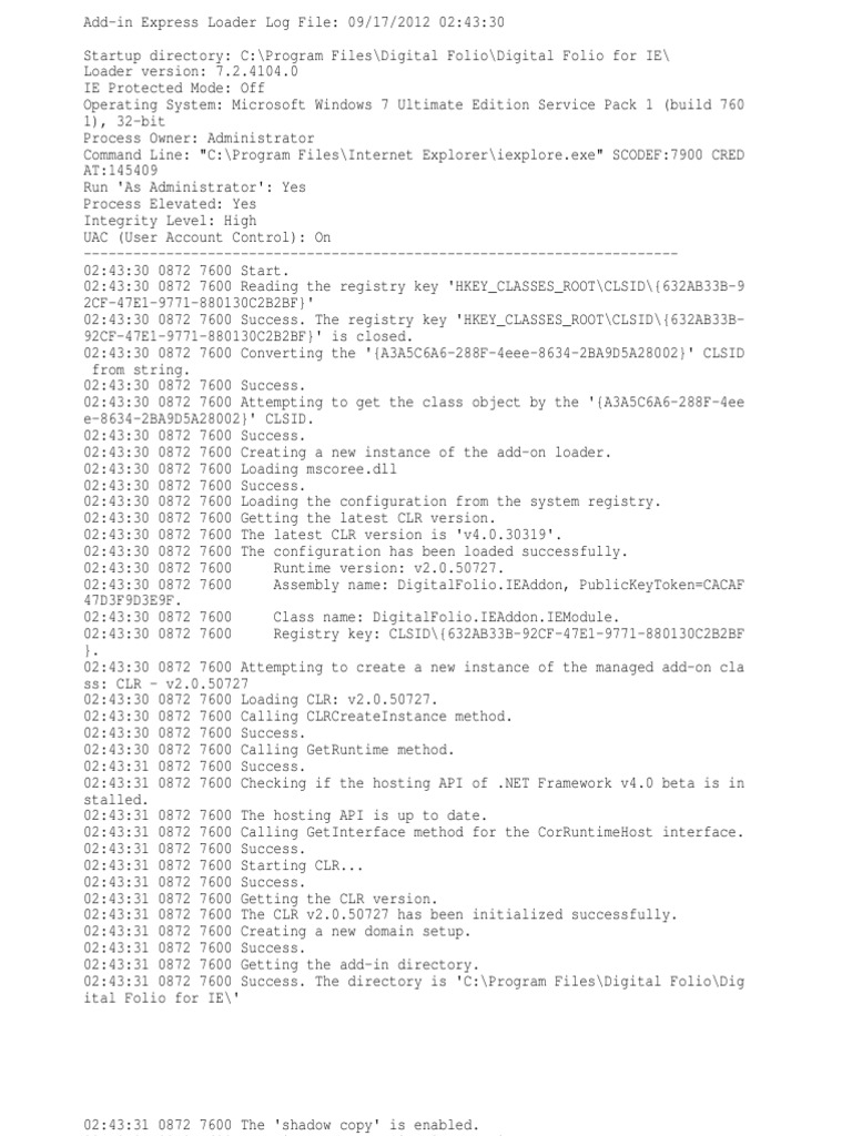 [Link] 0872 7600 Calling GetInterface method for the CorRuntimeHost interface.