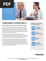 Think about the great managers and great leaders with whom youve worked. What made them effective? The unanimous response is that the most effective managers and leaders have the qualities of a great coach. Leaders who utilize coaching skills have more effective teams, retain their key people, provide better customer service in their organizations, and experience higher productivity overall. People remember them and their positive impact. The Ken Blanchard Companies is dedicated to improving leaders skillsparticularly their ability to coach. Initially, learning to coach requires time and practice, but it will save time by making leaders and employees more effective. Being more coach-like means that leaders will focus on drawing out ideas and solutions, collaborating, partnering, and focusing on the development of their people by using directive and supportive behaviors, while moving toward their organizational objectives and driving business results. Coaching Essentials for Leaders is a skillsbased training program that focuses on helping leaders to integrate coaching into their leadership style by developing core coaching skills and applying new behaviors to help develop their employees, colleagues, and teams.