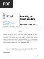 Rather than being a training event, Coaching Essentials for Leaders is a learning process that allows learning to take place over time. Coaching Essentials Provides a simple coaching conversation model Includes three coaching sessions for better application of material Establishes a consistent language that ts with all leadership styles Has immediate, real-world application Teaches communication skills that improve Partnering for Performance conversations Provides specic coaching skills that can be applied immediately Establishes an internal coaching structure that gives leaders and managers the tools that equip them to talk through and resolve challenges Helps individuals achieve balance between their needs and those of the organizations change objectives