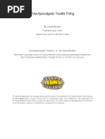 Once everyone has a character, you'll get into the first Scene. This will probably be the first place 5 where people start really giving you strange looks Okay, each of us gets an about how the system works. Again, playtests have Action. On your Action you shown that the easiest way to get people over their can do one of two things. I'll initial discomfort is to move them through and to do the first thing, which is to provide a good example of using the system. create a Goal. <Take a 3x5 card and write "Kill Hostages" Capes is closer in structure to a card or board-game on it> This is something my than to many traditional roleplaying games. It villain wants to do. Here's a provides an explicit turn order, with players acting die for him. <Place a red die one after the other. And it makes clear who is on the card, with "1" facing up> allowed to be narrating the happenings of the game. Some of you heroes may want As you guide players through the first scene, you'll to stop him. Here's a die for have to shepherd them through this structure as well. you. <Place a blue die on the card, with "1" facing up> In essence, the structure of play is a series of Eventually this will resolve, and repeating loops, each nested within the next. You when it does, whoever has the play a Scene. Each Scene is made of Pages. Each higher value on their side will Page starts with Claiming Goals, then has Actions get to narrate whether the (one for each character, generally), and ends with hostages live or die. Until Resolving Goals. Each Action either creates a Goal, then, nobody can narrate or uses an Ability. If it uses an Ability then the Action anything that would resolve the may also have Reactions (up to one per player). See conflict. I can't kill hostages, the diagram at right. and you heroes can't save all of them. That's my Action. Happily, it's fairly easy to get people into this Now I get to narrate what it immediately. You'll teach them Actions, then means in the game-world. Reactions (as applicable), then show them how <Narrate, establishing your Actons are grouped together in Pages, and how villain or villain-group's raid on Pages form a Scene. Start with shpiel 5 at left. the lab, and their heartless When you're done you should have something that disregard for innocent life (but looks like the figure at right. short of killing anyone)>
