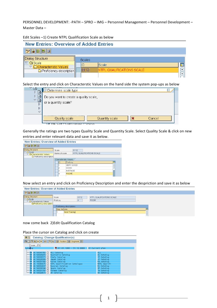 PERSONNEL DEVELOPMENT: -PATH SPRO IMG Personnel Management Personnel Development Master Data Edit Scales 1) Create NTPL