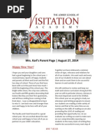 written to inform parents of school news and upcoming events. It is very important that parents read them so that they are aware of the monthly activities that may involve their children within St. Patrick School. 2) Continuous Improvement Plan: Every year the staff and School Community Council set and approve goals that assist our students with learning and achievement outcomes. Newsletters will indicate strategies that are being implemented to assist in helping our students learn and obtain specific goal areas. 3) Home School Communication: Your childs teacher will communicate regularly with you through class emails, phone calls, home reading programs, etc. We believe the home school communication is necessary to help your child learn. Please contact your childs teacher as soon as