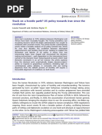 s in the past, containment may become the U.s. policy of last resort toward iran. if Washington is once again unable to persuade tehran to give up its nuclear program and its other problematic behaviors, if it is unable or unwilling to try to overthrow the regime, if it chooses not to invade or if it chooses not to use airstrikes or to encourage the israelis to do so, then it may find itself dusting off and applying a policy of containment toward iran.78 indeed, there seems to be an implicit assumption in many of the arguments made by americans about iran policy that if one of the diplomatic or regime change options cannot be made to work soon, then Washington will have no choice but to adopt either containment or one of the military options.