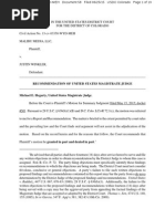 Picture that Defendant has downloaded onto any computer hard drive or server without Plaintiffs authorization and shall destroy all copies of those downloaded Motion Picture transferred onto any physical medium or device in each Defendants possession, custody, or control. B. For actual damages or statutory damages pursuant to 17 U.S.C. 504, at the election of the Plaintiff. C. For Plaintiffs costs. D. For Plaintiffs reasonable attorneys fees. E. For such other and further relief as the Court deems proper. Respectfully submitted, PLAINTIFF WEST COAST PRODUCTIONS, INC. By its attorneys, MILE HIGH LAW OFFICE Dated: October 5, 2012 By:__/s/ Sanjin Mutic________ Sanjin Mutic Attorney at Law 621 Seventeenth St. Ste. 1101 Denver, CO 80293 303-204-6141 sanjin@[Link]