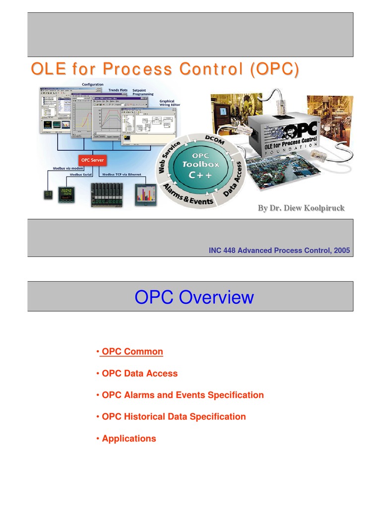 OPC Common OPC Data Access OPC Alarms and Events Specification OPC Historical Data Specification Applications