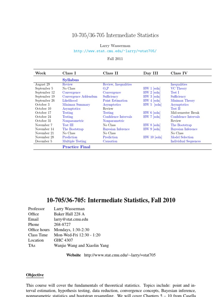 Intermediate Statistics Course Syllabus
