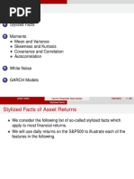 7. The covariance is Cov(X, Y ) = E((X x )(Y y )) = E(XY ) X Y and the correlation is (X, Y ) = Cov(X, Y )/x y . Recall that 1 (X, Y ) 1. The conditional expectation of Y given X is the random variable E(Y |X) whose value, when X = x is E(Y |X = x) = y p(y|x)dy where p(y|x) = p(x, y)/p(x). The Law of Total Expectation or Law of Iterated Expectation: E(Y ) = E E(Y |X) = The Law of Total Variance is Var(Y ) = Var E(Y |X) + E Var(Y |X) . The nth moment is E (X n ) and the nth central moment is E ((X )n ). The moment generating function (mgf ) is MX (t) = E etX . Then, MX (t)|t=0 = E (X n ) . d If MX (t) = MY (t) for all t in an interval around 0 then X = Y . 2