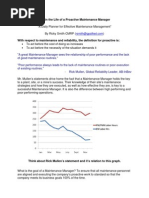 At minimum level of PM, it is a remedial policy fix machines only when they break the cost of breakdowns, interruptions to production, and repairs is high As the PM effort is increased, breakdown and repair cost is reduced At some point, the total maintenance cost (PM, breakdown, and repair) reach a minimum