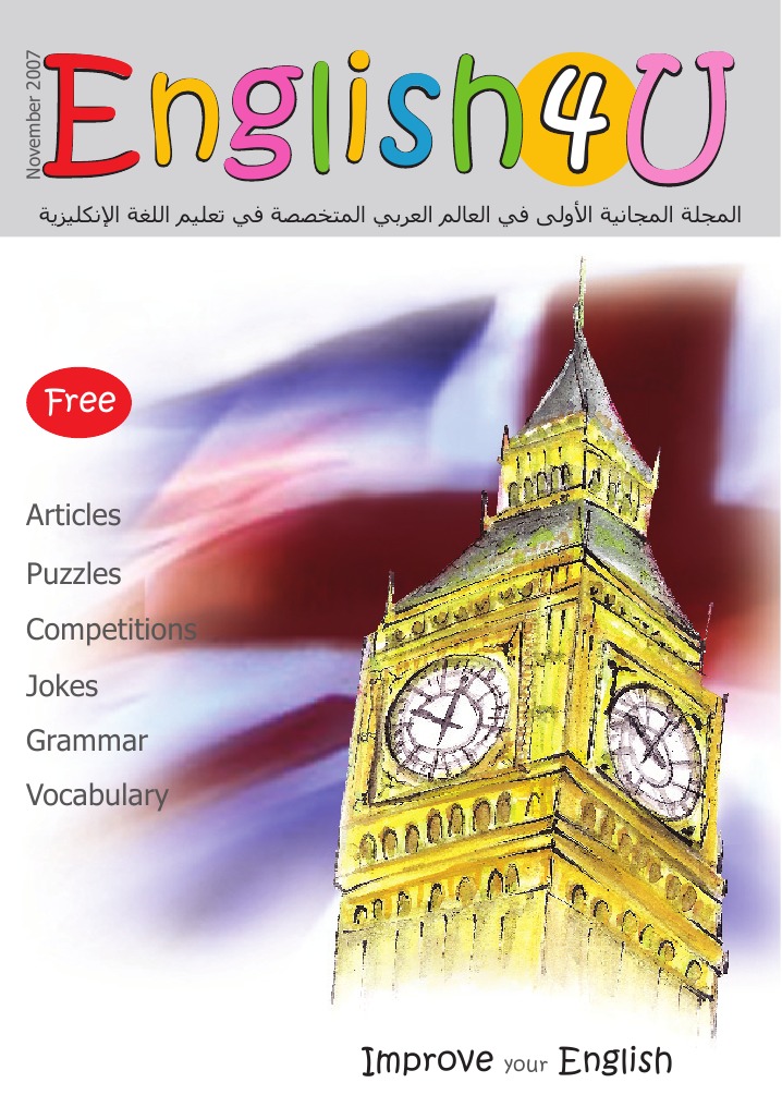 Welcome to English 4 U, a new and unique magazine for learners of English in the Arab world. For many of us, English is the main language of communication. Although a wide variety of magazines are available, we believe that a magazine just for learners of English will stimulate an interest in the language and help to develop the skills of UAE nationals and residents. In each magazine we will introduce new topics to add to those already covered in previous editions and so you will be able to build up a useful reference collection. English 4 U will be issued every month and will be delivered free to a wide range of outlets across the country. Please contact us with your comments and ideas. Our details are shown below. The magazine has three levels: easy medium hard We hope you like our magazine. Happy reading !