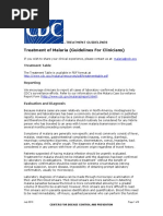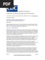 o Time: Graph the number of cases by week/month. Construct an epidemic curve during epidemics. o Place: Plot location of households for new cases and deaths. o Person: Count the number of new malaria cases and deaths by month and analyse age groups and time of onset. Case Management: The results of parasitological diagnosis are usually available within a short time (less than two hours). However, in the absence or delay of parasitological diagnosis, patients with suspected severe malaria, and other high risk groups, should be treated immediately on clinical grounds. Treatment of uncomplicated Falciparum Malaria o Artemisinin-based combination therapies (ACTs) are the recommended treatments for uncomplicated P. falciparum malaria however Artemisinin and its derivatives should not be used as monotherapy. The following ACTs are recommended: Artemether plus lumefantrine, Artesunate plus sulfadoxine-pyrimethamine. Artemether-Lumefantrine is currently available as a fixed-dose formulation with dispersible or standard tablets containing 20 mg of Artemether and 120 mg of lumefantrine. The recommended treatment is a 6-dose regimen Twice Daily over a 3-day period. The dosing is based on the number of tablets per dose according to pre-defined weight bands (514 kg: 1 tablet; 1524 kg: 2 tablets; 2534 kg: 3 tablets; and > 34 kg: 4 tablets) In case of pregnant women, during first trimester quinine plus clindamycin to be given for 7 days (Artesunate plus clindamycin for 7 days is indicated if this treatment fails); However, During Second and Third trimester, Artesunate plus clindamycin to be given for 7 days, or quinine plus clindamycin are to be given for 7 days. Uncomplicated Vivax Infections o Chloroquine combined with Primaquine is the treatment of choice for chloroquinesensitive infections. Dosage is as given below: Chloroquine: 04 STAT, 02 after 6 hours, then 12 hourly for 02 days. Primaquine: 14 days treatment is prescribed for radical treatment of Vivax. Artesunate plus sulfadoxine-pyrimethamine is not effective in many places. Warnings: Do not give Primaquine to pregnant women and children below 2 years of age, and it is advisable to do a Glucose 6-Phosphate dehydrogenase test before giving this drug. Give Primaquine preferably after the patient has recovered from the acute illness. Do not give undiluted chloroquine or quinine by I/M or I/V route, as it can cause sudden cardiac arrest, especially in children. Do not give Sulfadoxine-pyrimethamine to children below 2 months of age or during first trimester of pregnancy. Halofantrine (Halfan) is potentially a cardio-toxic drug and should be used under strict government control, according to WHO recommendations. Laboratory Confirmation: