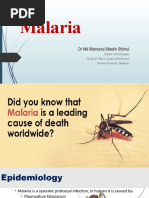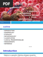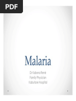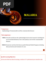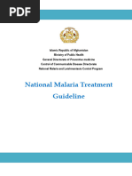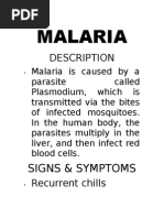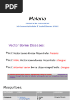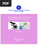 Diagnostic Test: Microscopy: Presence of malarial parasites in blood films for suspected cases Malaria Rapid diagnostic test Specimen: Blood: Usually finger-stick sample for all ages or other accepted method for collecting blood from very young children Collect 3-5ml blood in a tube with anticoagulant (EDTA) for demonstration of malarial parasites in peripheral blood film. When to collect the specimen: All suspected malaria cases both from outpatient and indoor departments before the start of antimalarial drugs. From patients where cause of fever is not known (Pyrexia of Unknown Origin). How to prepare, store, and transport the specimen: Blood smear: Collect blood directly onto correctly cleaned and labelled microscope slides and prepare thick and thin smears. Allow smears to dry thoroughly Stain using the appropriate stain and technique Store stained and thoroughly dried slides at room temperature out of direct sunlight. For rapid diagnostic test: Collect specimen and perform test according to manufacturers instructions. Results: Thick and thin smear results can be available the same day as preparation. Microscopic examination of malarial slides may also reveal the presence of other blood-borne parasites. RDT result is obtained immediately. Note: In the inpatient setting, perform a hemoglobin estimation laboratory test to confirm severe anaemia, in children 2 months to 5 years in age. PREVENTION: Personal protection Wear long sleeves and trousers outside the houses in the evening. Use repellent creams and sprays. Avoid of night time outside activities. Screen windows and use mosquito nets. Use mosquito's coils or vaporizing mat containing a pyrethrin. Destroy breeding places of mosquitoes by filling in ditches where water stands or stagnates. Prompt diagnosis and treatment of cases to prevent spread of the disease. Vector control Two forms of vector control are effective in a wide range of circumstances. These are: Insecticide-treated mosquito nets (ITNs) Indoor spraying with residual insecticides (IRS) Chemoprophylaxis