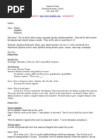 GOALS: Language o Recognize and trace B o Recognize the Circle o Follow on step direction o Recognize first letter of their name o Recognize and say their vocab words Self-Help Skills o Explore spoon/fork o Put away toy when its clean-up time o Take cloths off baby (put back on) Cognitive o Child knows where seat is with only being reminded once a day o Sit on spot during story time o Recognize when to say please o Identify one common animal/sound Emotional o Appropriately share one toy when asked o Understand that when theyre reactions are inappropriate Physical o Learn how to hop Social o Play beside friends Opening (circle time): Music and Finger plays: Some families are large. (spread arms out wide) Some families are small (bring arms close together) But I love my family (cross arms over chest) best of all Read-Aloud Story: *LIST BELOW, Find one at library for the week