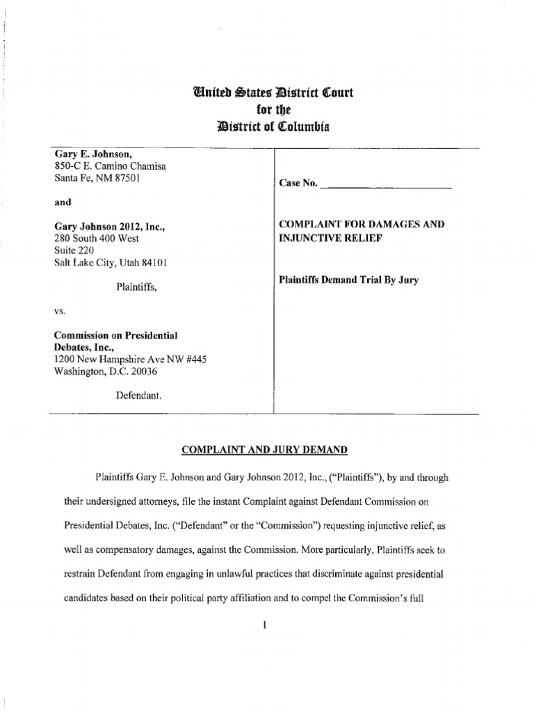 Save Complaint Against Commission on Presidential Debat... For Later