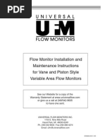 Protection From Debris On new installations, care must be taken to protect the meter from damage during start-up. It is recommended that a strainer be installed upstream of the meter. Damage may result from the passage through the meter of dirt, sand, welding slag or spatter, thread cuttings, rust, etc. It is recommended that a spool be constructed to be installed in place of the meter until the system is flushed. The spool is a flanged length of pipe equal in length to the meter and its attached accessories. The meter may be left in place if the plumbing can be temporarily bypassed around the meter to protect the meter from debris. Once the system has run clean for a period of time the meter may be reinstalled or temporary protective devices removed. Thermal Expansion Most liquids will expand and contract with temperature. In any system where there is a chance for liquid to be captured between closed valves without relief, there is a risk of thermal expansion. This condition can create dangerously high pressures within the system. For every one degree of temperature increase, there is a corresponding pressure increase of 126 PSI (8.69 BAR). Care must be taken in designing the system where thermal shock may occur by implementing Pressure Relief Valves or Thermal Expansion Joints in the system design. Hydraulic Shock (Water Hammer) Hydraulic shock is a rise in pressure that occurs when an operating system has immediate change in direction of flow. This can be due to a sudden valve closure while the system is operating at a at a high flow rate. Hydraulic shock can damage any item in the way of the product flow such as the internal parts of the meter, valves, and pump. System design and improper operating procedures will increase the risk of this problem. The use of 2-stage preset control valves or surge suppressing bladders or risers will help reduce or eliminate this problem. The shock pressure when a valve is closed quickly is computed as follows. The maximum recommended shock pressure is 6 PSI. Shock Pressure (PSI) = 63 x Velocity (FPS) In order to eliminate hydraulic shock from sudden valve closure, the valve closure rate must be reduced. The time required to close the valve so that the line pressure will not exceed the normal pressure at zero flow is calculated as follows. Time (seconds) = 0.027 x L x V NF V L N F = = = = Velocity in Feet/Seconds Length of pipe before the valve in feet Line pressure at no flow Line pressure at full flow