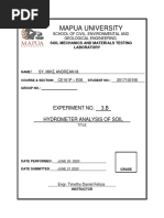 1. Experiment # 1: Determination of Water Content (August 26, 2003) 2. Experiment # 2: Determination of Specific Gravity of Soil (Sept. 2, 2003) 3. Experiment # 3: Grain Size Analysis: Sieve Analysis (Sept. 9, 2003) 4. Experiment # 4: Grain Size Analysis: Hydrometer Analysis (Sept. 16, 2003) 5. Experiment # 5: Atterberg Limit Tests: Liquid & Plastic Limit (Sept. 23, 2003) pp. 1-3