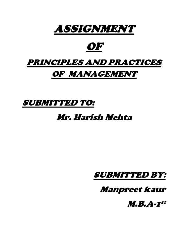 PRINCIPLES AND PRACTICES OF MANAGEMENT SUBMITTED TO: Mr. Harish Mehta