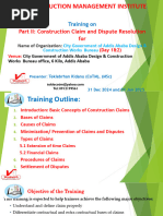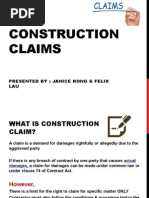 Delays on construction projects, and the claims which emanate from such delays, are an integral part of the modern construction process. The overwhelming amount of time, energy, and cost devoted to delay claims does not begin when a claim is initially submitted at or near the completion of a job, rather, the construction delay claim process commences at project inception. A discussion is provided relative to how claims are generated during a construction project, the various types of delay, contract provisions which may trigger construction delay claims, methods of solidifying a partys position, presentation, substantiation and justification of a claim, formal and informal methods to resolve claims and, most importantly, mechanisms by which to cut down on the incidence of delay claims.
